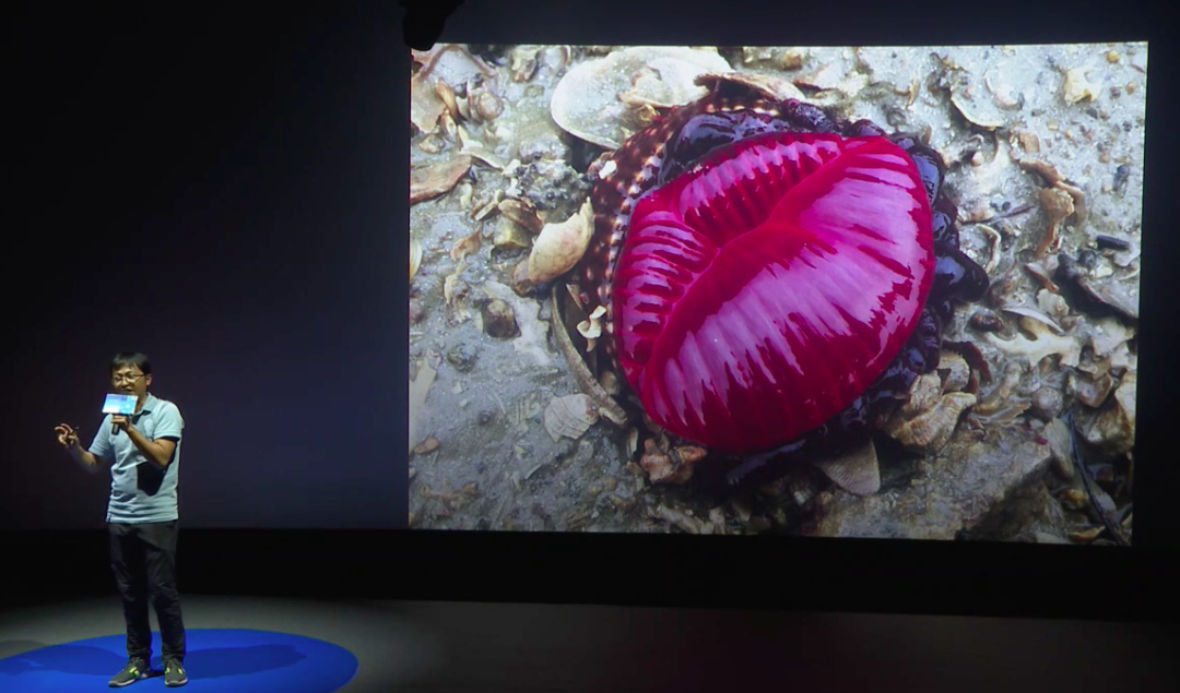 有一次我在海边看到一个什么?烈焰红唇。感觉我的桃花运来了,这个是一种海葵,它把触手收进去的时候,那个瞬间刚刚好,特别像一个红唇。