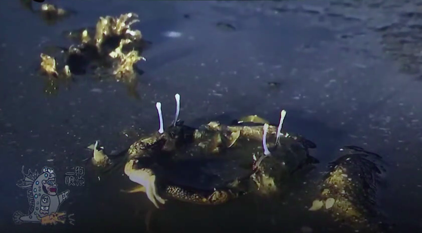 海边还有很多各种有趣的生物,比如像万岁大眼蟹。