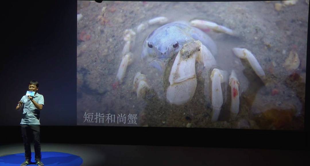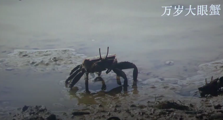 为什么叫万岁大眼蟹呢?因为它吃饭吃着吃着就开始做动作,它动作是什么样子?万岁。很像我们古代大臣去朝拜、朝见皇帝的时候。