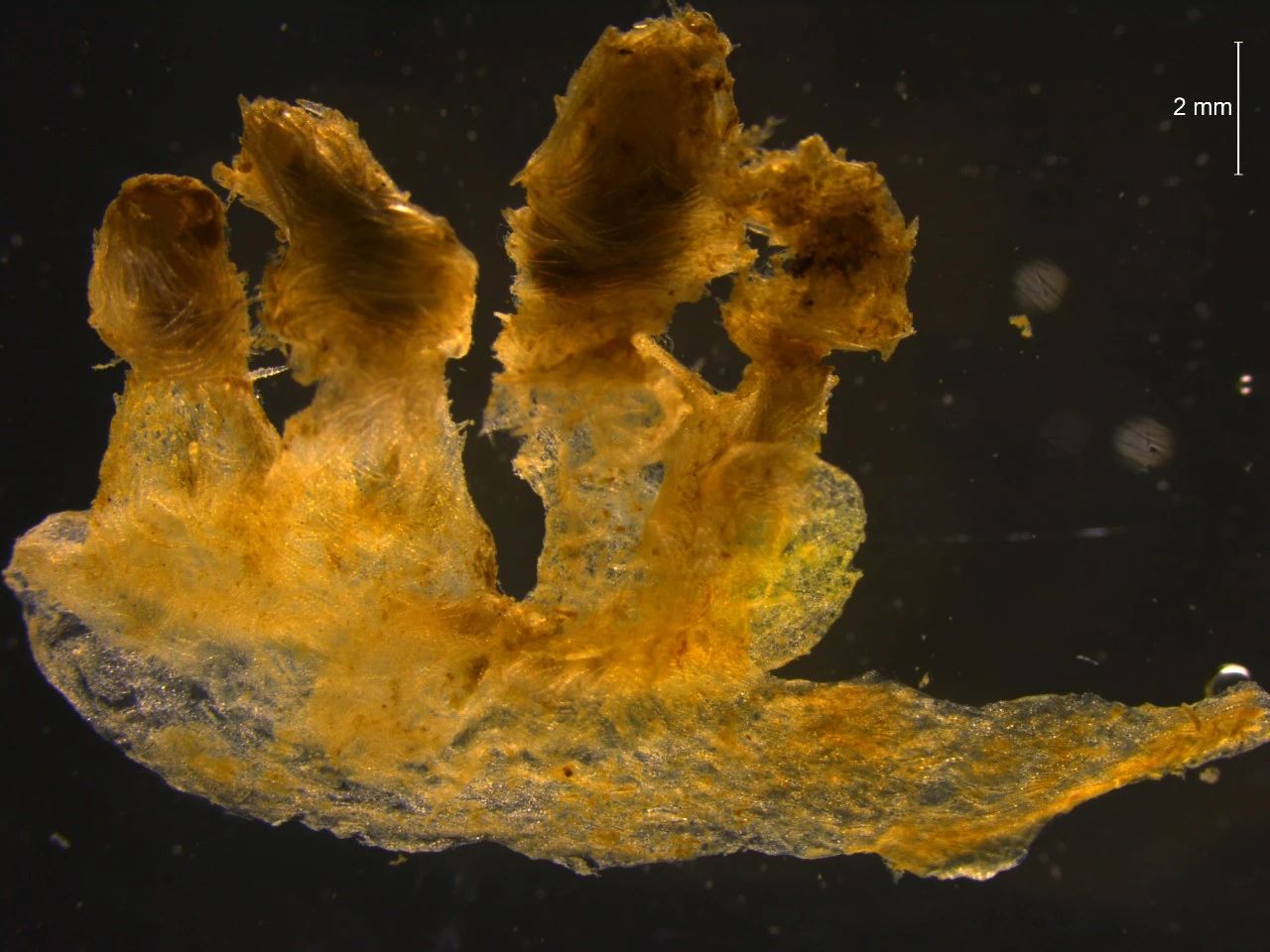 “我是一种扁形动物,这是我的卵茧,我就藏在这个卵茧内部,我在内部产卵。其实我从小寄生在某些深海甲壳动物体内,我成熟时会有异性进来,然后我们一起把宿主杀死,我们是不是有点恐怖?我一离开宿主尸体就爬到了这块塑料上,快速地在体表分泌硬的卵茧,把自己包裹起来,然后我就可以产卵了,守护着我的宝宝。”