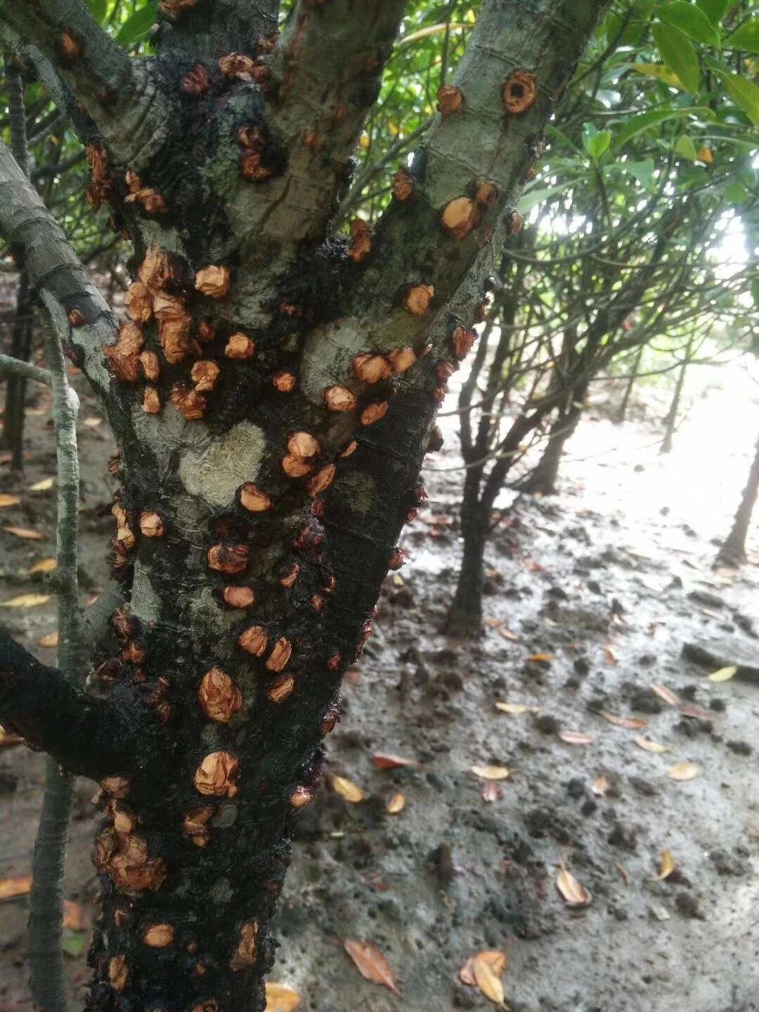 红树植物的树干、各种类型的呼吸根表面分布着各种各样的皮孔。有着吸收氧气和排出废物的作用。他们就像一个个小鼻子在帮助红树植物根系被海水淹没时仍然能进行呼吸作用。