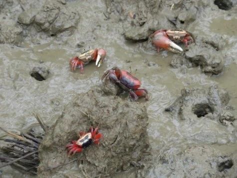 红树林生态系统还以它丰富的生物多样性为人们所熟知。鲨鱼、鳄鱼、老虎、弹涂鱼、招潮蟹等等都可以在红树林里见到它们的身影。