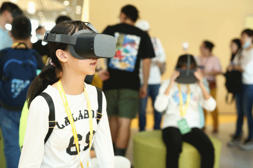 活动开始前,陆续到场的小记者们就先收获了一个意想不到的惊喜——VR体验!在学生助理的指导下,小记者们戴上VR眼镜,跟随杨位迪老师一起“潜入南海”,享受珊瑚触手可及、小丑鱼环绕身旁的视觉盛宴,体会高科技带来的身临其境的潜水体验。