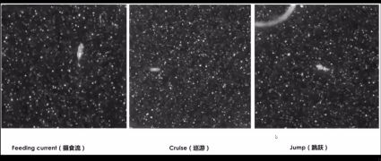 对微小的浮游动物而言,水的粘滞性限制了游泳能力,海水就像黏糊糊的蜂蜜。即使在这种环境下,它们仍可以在不到一秒的时间内捕捉到猎物,在危机时刻触发超过身长几倍到几十倍的逃跑跳跃。这些用人眼看来转瞬即逝的动作,其实是经历了一系列复杂的过程才完成的。如果利用高速相机来拍摄动物行为,进入被放慢节奏的微观海洋世界,它们的动作细节便可以清晰地展现于我们面前。
