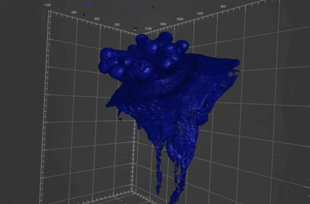 基于这些大量的连续光学切片,我们就能对珊瑚样品进行具有单细胞分辨率的三维重构,还可以随时利用三维影像处理软件对数字化后的珊瑚样品进行任意角度的“再切片”,获得我们感兴趣的信息。结合多样的荧光标记技术和对三维数据的定量描述可以帮助我们更好地研究珊瑚和虫黄藻的共生关系。