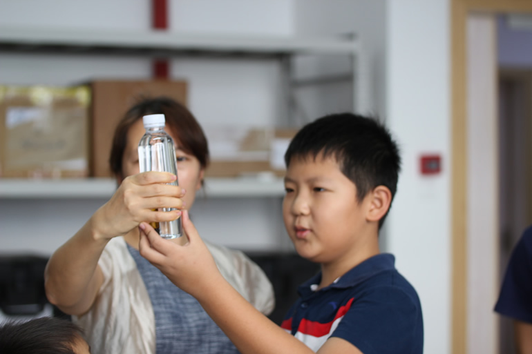 孩子们在实验室里模拟了加速的海洋酸化实验,用显微镜寻找有孔虫,用液氮快速冷冻香蕉和棒棒冰,辨识各种矿物和宝石标本。用来观测海洋的科考船、浮标、潜标、卫星遥感以及实现水下通信的“机器人”等各种高新技术通过浮力小魔术、3D模型操作、触摸机器人、电视墙互动、电脑模型等方式展现在公众面前,听起来高深的流体力学实验室用模型展示了海洋内波现象,可以实现自动化分析的“懒人技术”、高通量测序仪器也受到大家的关注。