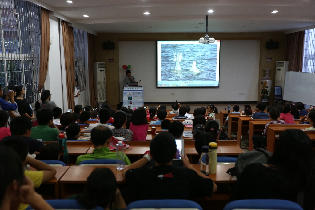 除此之外,本次海洋开放日还安排了六场特邀科普讲座,内容涉及红树林生态保护、极地科考经历、海洋蝠鲼、食品安全问题、潮间带生物探秘等诸多领域,讲者既有海洋科学资深专家、中国极地科考船“雪龙号”船长,也有热爱海洋的工程师,他们与市民分享自己的海洋故事及所知所想,从不同视角为听众呈现了海洋科学的魅力所在。“我通过沈权船长的报告看到了美丽的极光,船长还解答了我关于雪龙号和马航失事客机搜救的问题”,一位中学生兴奋地说,“能与船长直接对话使我对雪龙号的了解更加深刻了。”
