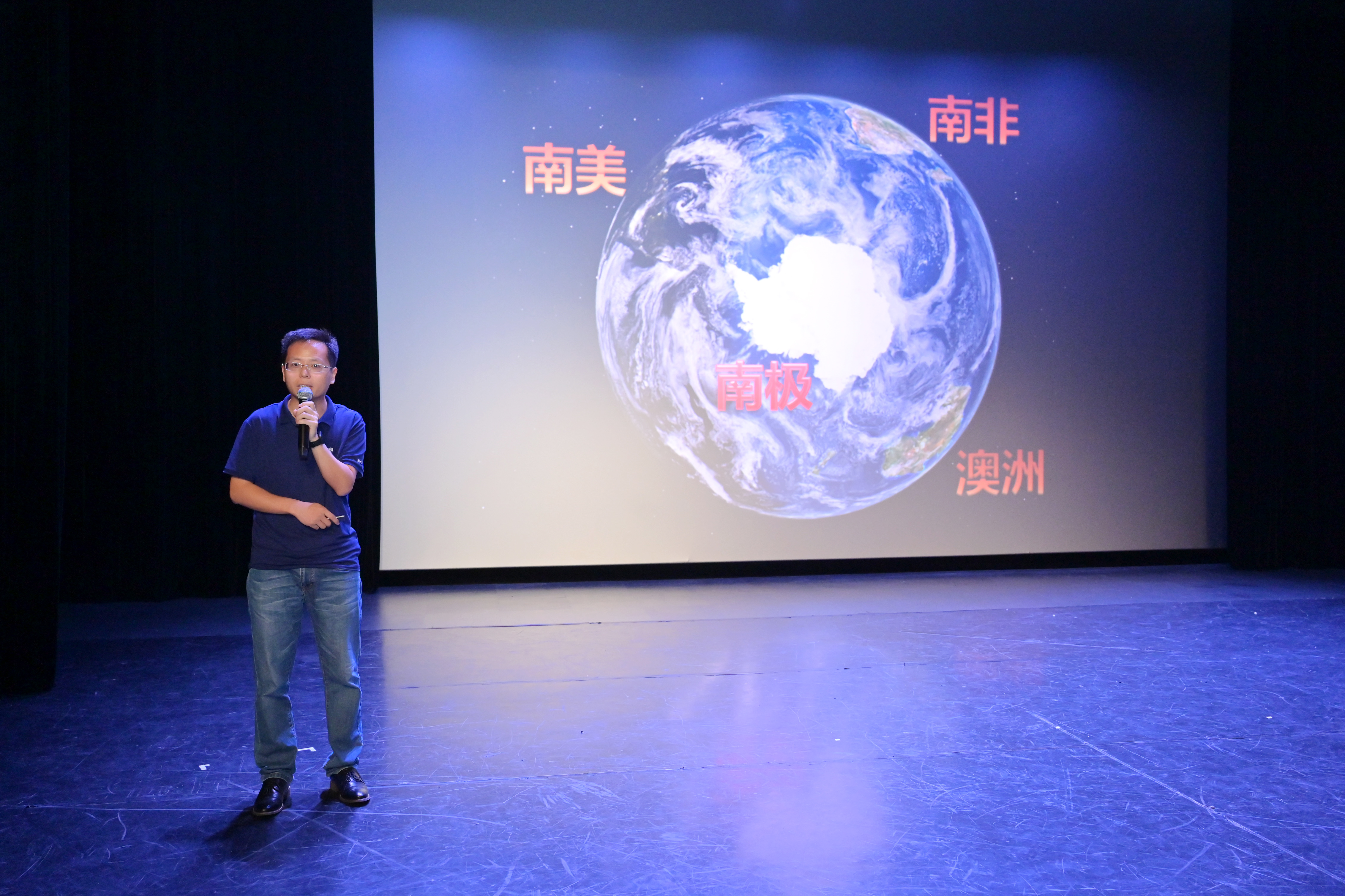 南极是被人们称为第七大陆。这片拥有1400 万平方公里的陆地,有95%以上的面积被冰雪覆盖。南极的淡水储备占全球淡水储备的75%,如果这些冰雪全部融化,灌进海洋,会致使全球海平面上升 58 米。“作为一个没有被人类开发,没有被污染过的纯净大陆,南极在气候变化中发挥着不可替代的作用”,陈剑桥老师介绍到。