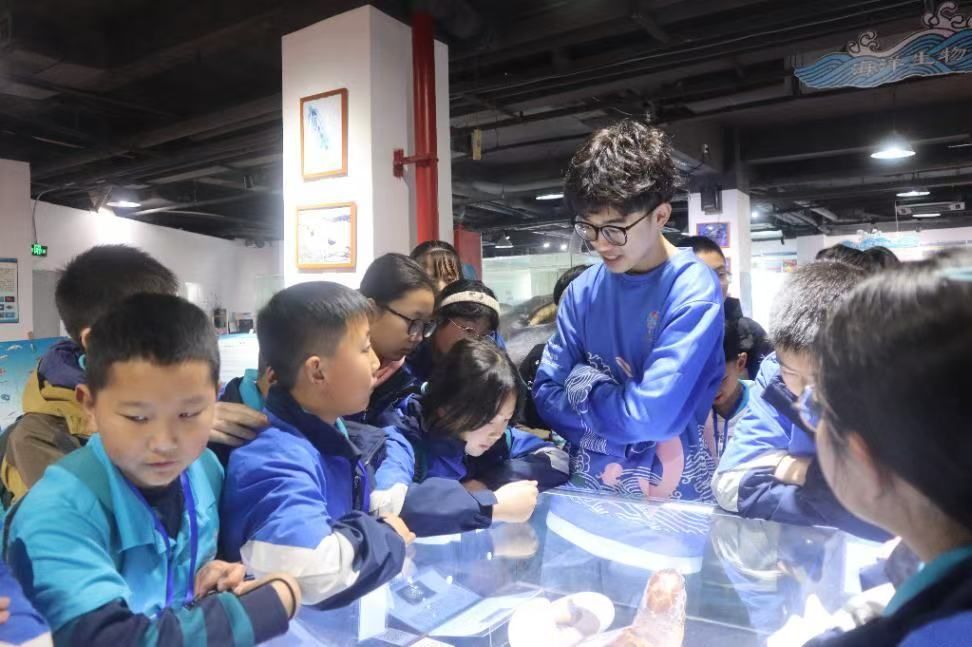 孩子们在讲解员的带领下先后参观了博物馆海洋地质、海洋生物、观海弄潮和水声信息与通信等展区。大量珍贵海洋生物标本,特别是以厦大校主陈嘉庚先生名字命名的厦门特有物种“陈嘉庚水母”,以及厦大上世纪为渔民研发的寻鱼声呐等展品都给孩子们留下了深刻印象。