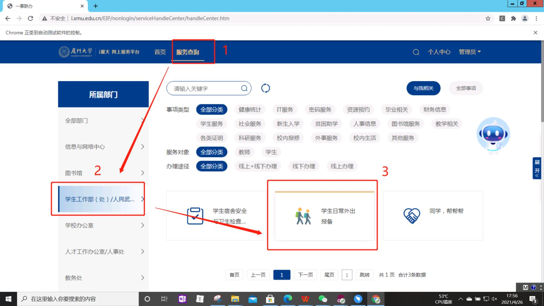 请假获批后,请同学们务必在外出报备系统登记。网址https://ids.xmu.edu.cn/authserver/login?service=https%3A%2F%2Fi.xmu.edu.cn%2FEIP%2Fuser%2Findex.htm