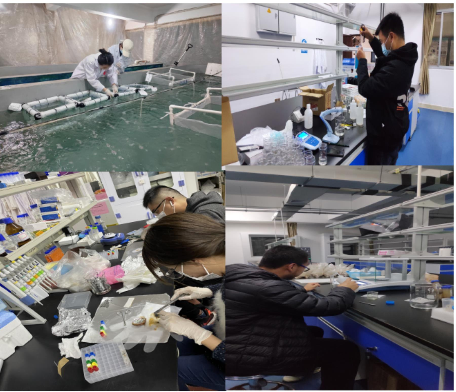 此外,张伟宾同学积极利用假期时间,聚焦抗生素污染重大科技问题,努力研究新型海洋动物来源抗菌肽异源重组表达的条件优化;肖仕聪同学依托海洋碳汇与生物地球化学过程基础科学中心,开展海洋有机碳在缺氧环境下的转化研究,他希望能为“微型生物碳泵”理论勾勒更多细节。整个寒假,刘曼君同学所研究的关键基因多物种亚型鉴定与分析工作将一刻不停;陈曦贝同学希望她的虫黄藻培养实验能为其毕业论文最后发力;张鑫海、李镇等同学进行设计海上风机流体动力模型;惠健刚和黄嘉丽同学则一起探索水下声场的实验过程……