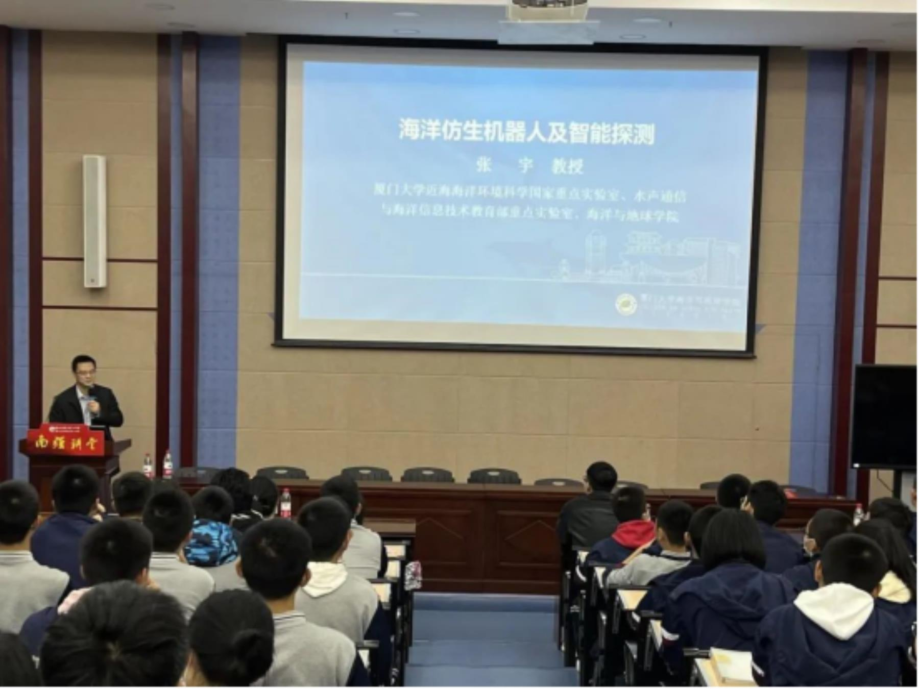 12月21日下午,福建省厦门第二中学举办南强讲堂之海洋系列讲座。厦门大学海洋与地球学院副院长、教育部长江学者特聘教授张宇做“海洋仿生机器人及智能探测”讲座。