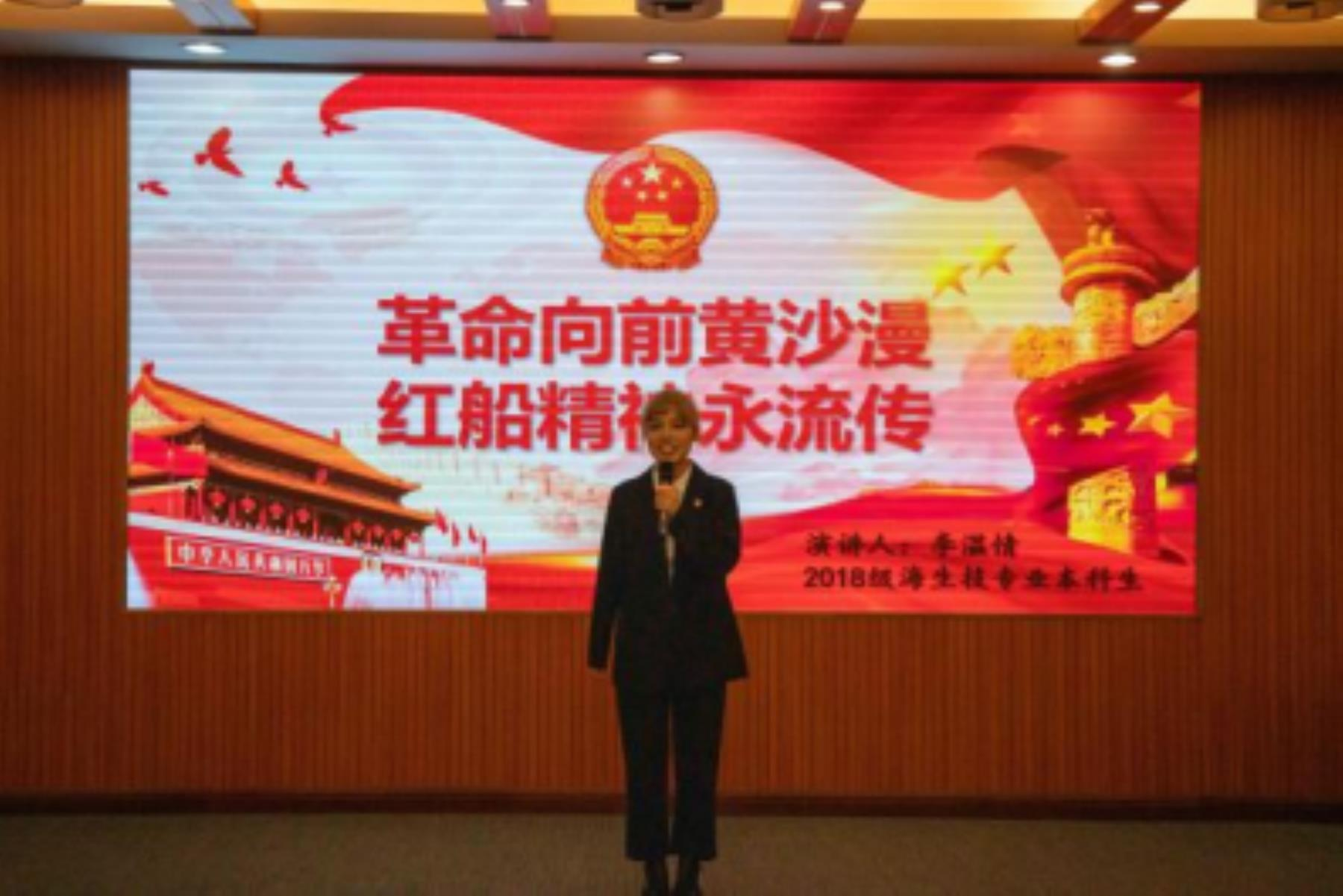 “烟雨楼台,革命萌生,此间曾著星星火;风云世界,逢春蛰起,到处皆闻殷殷雷。”李温情重温了中国共产党的伟大发展历程,让红船精神深入人心,赢得了全场的共鸣。
