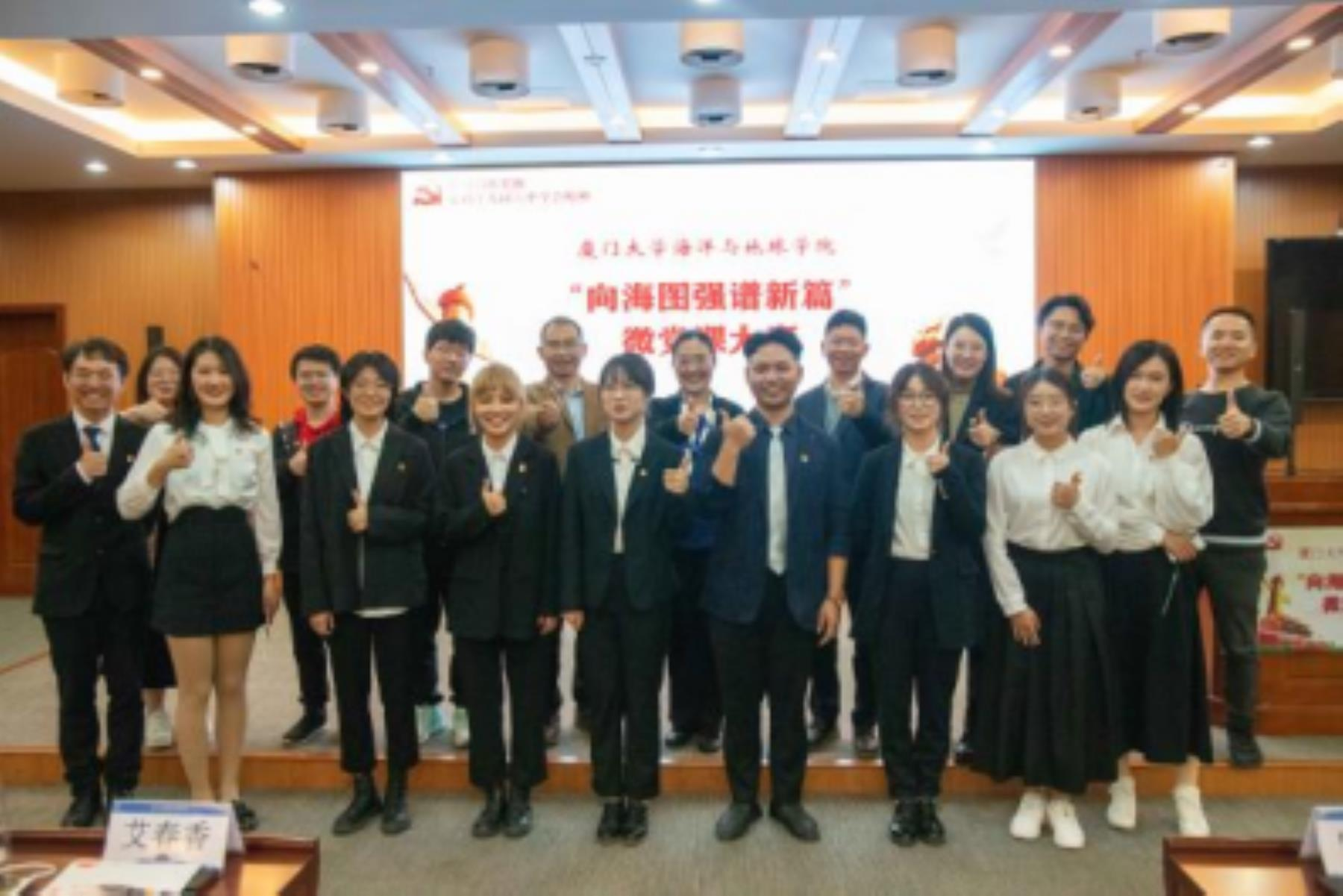 为回顾中国共产党百年奋斗的光辉历程,学习贯彻党的十九届六中全会精神,海洋与地球学院于12月17日在希平楼C2-403报告厅举行“向海图强谱新篇”微党课大赛。校党委组织部副部长曲延云,翔安校区办公室主任薛志平,校团委副书记、翔安校区团工委书记林蕊,学院党委副书记邱荣峰,学院党委委员艾春香,学院团委副书记蔡笑霜,学院辅导员黄良等出席。大赛由2021级硕士研究生王宇主持。