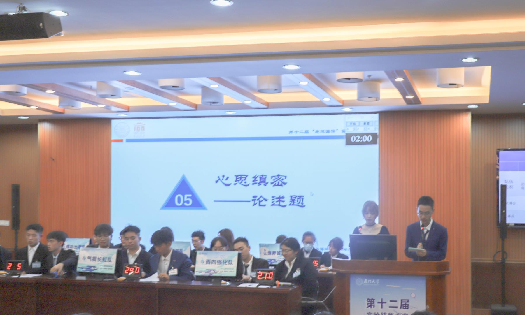 经过三轮环节,各组选手们渐入佳境。在心有灵犀的你比我猜环节,选手们大开脑洞、配合默契,期间台下笑声掌声不断,为紧张的比赛平添一份趣味;在心思缜密论述题环节,各队选手竭尽所能地调动自己的知识储备,力争全面回答问题,各位评委老师耐心点评,并给出中肯的评价与分数;最后雾里看花纠错题,选手们在观看一段实验视频后,经过缜密的检查与激烈的讨论,在答题版上写下视频中出现的各类错误。至此,本届大赛决赛的答题环节全部结束。