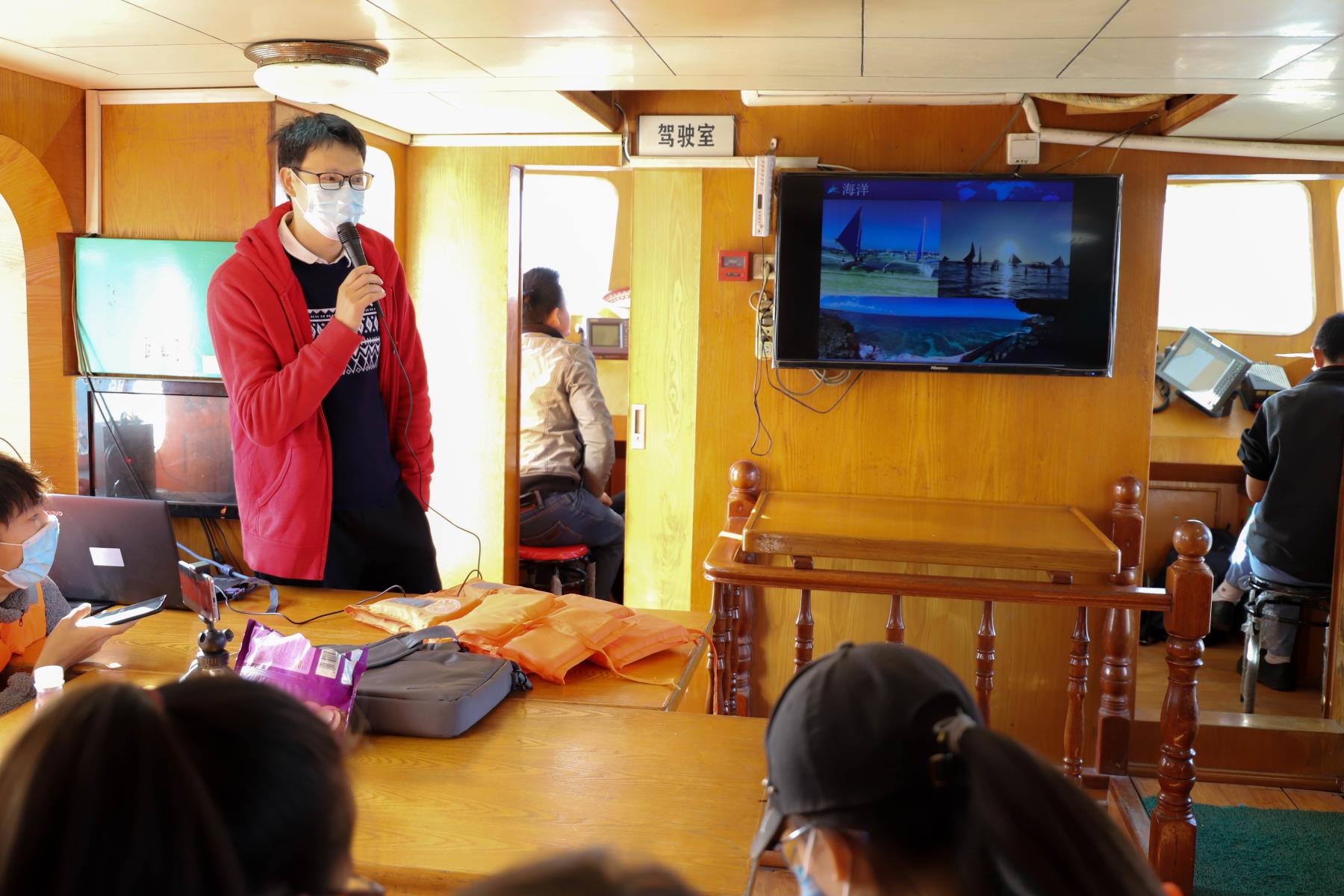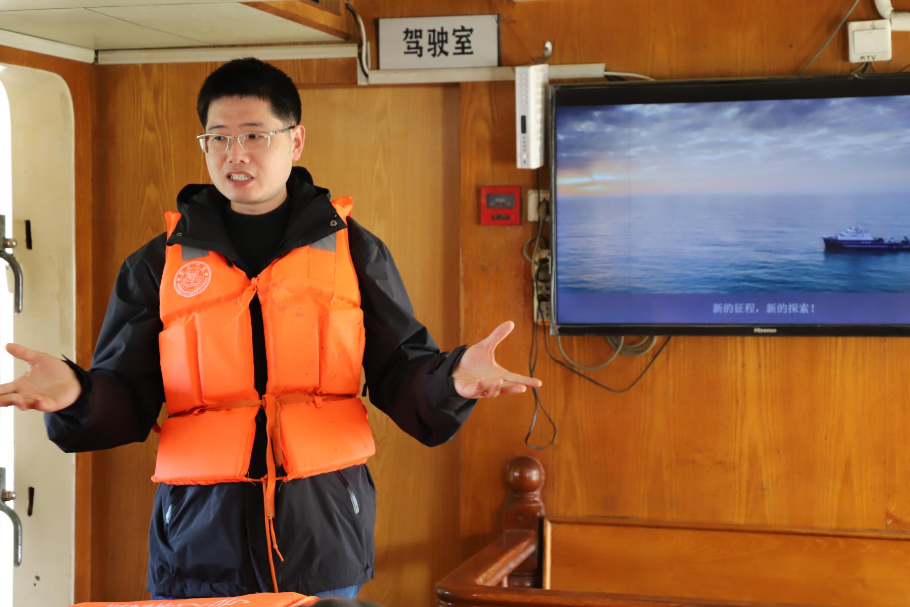 12月5日上午,入围决赛的六支队伍乘车抵达码头并有序登上“海洋二号”科考船,进行本次决赛的出海实习环节。刘瑞华老师先向同学们介绍救生衣的使用方法及出海安全注意事项。随后,骆智斌老师、刘春兰老师、杨位迪老师严谨细致地向选手们讲解了有关海洋科学研究中的水文调查方法、海洋监测与海洋浮游生物调查方法,而后同学们在专业人员的带领下进入驾驶室参观学习。同学们认真记录,积极与老师交流,在海上实习的过程中走近海洋,了解海洋。