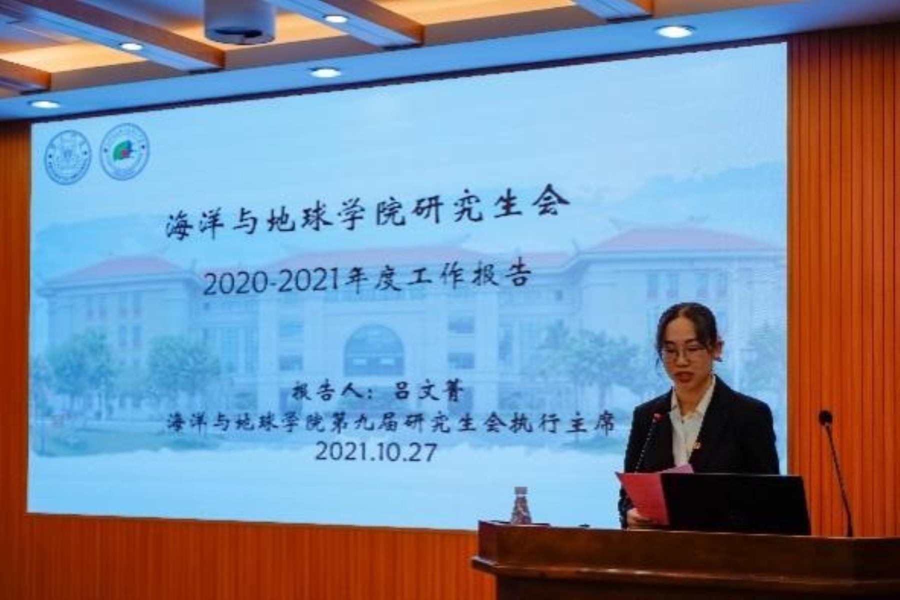 2021年10月27日晚,厦门大学海洋与地球学院第十次研究生团员代表大会、第十次研究生代表大会在希平楼C2-403报告厅召开。院党委副书记邱荣锋、党委副书记唐腾凤,团委副书记侯佳君、蔡笑霜,辅导员、陈雅琪,校研究生会主席谢榕顺及翔安校区各院研究生会主席团代表出席,会议由第九届研究生会主席团成员魏祎铭主持。