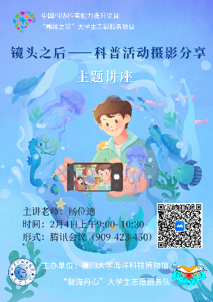 为切实提高志愿者的服务能力,提升志愿服务质量,厦门大学海洋科技博物馆碧海丹心志愿服务队于1月26日、27日和2月4日分别开展了3场线上的志愿者能力提升培训活动,共计两百余人次参与本次培训,活动由张朝霞老师主持。