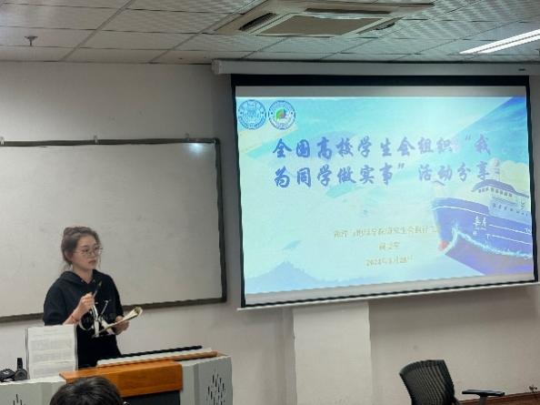 蔺雯雯分享了在贵阳参加“我为同学做实事”全国展示交流活动的收获,她通过全国各高校优秀案例引导大家学习和讨论。她鼓励大家要做“青年友”、不做“青年官”,要将工作落实到位,多做一些小而实的工作,并且定期地反思工作,不断创新活动形式,切实地为同学们做实事、做要事、做好事。