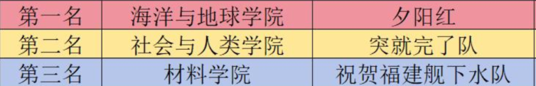 本次比赛全校共有51支队伍参赛,海洋与地球学院本科生“夕阳红”队与研究生“不好惹”队从初赛中脱颖而出,进入16强赛。其中“夕阳红”队获厦门大学第四届军事模拟对抗大赛线上知识竞赛第一名!