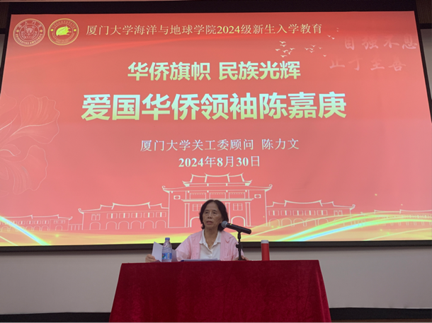 30日上午,厦门大学原党委副书记、关工委顾问、1973级海洋学系系友陈力文老师以大量史实和生动的事例,讲述了陈嘉庚先生一生为辛亥革命、民族教育、抗日战争、解放战争、新中国的建设作出的不朽贡献,让大家对嘉庚先生“忠公 诚毅 勤俭 创新”的伟大品格和厦门大学的校史校情有了更深入的了解。