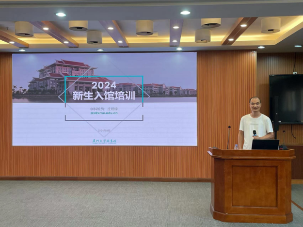 31日上午,厦门大学图书馆庄锐锌老师应邀为新生带来了图书馆入馆培训。他分别讲述了图书馆空间布局、账号管理、资源使用、基础服务、规章制度等多个重要方面内容,引导同学们充分了解图书馆资源的丰富性以及如何快速找到学习资源。