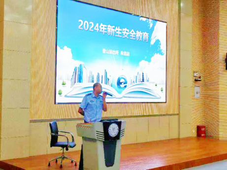 香山派出所朱昆尉警官对新生进行防诈骗宣传。他围绕退改票等多种诈骗方式进行了详细地讲解,通过常见诈骗案例为各位新生敲响反诈防诈警钟,增强新生入学后的防诈反诈意识。