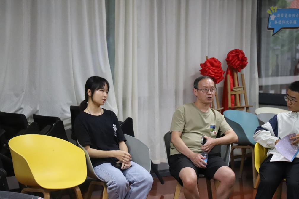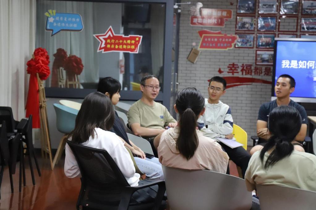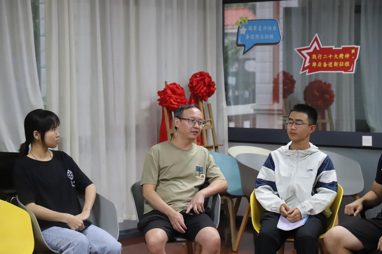 周老师还邀请了2021级本科生陈淑兰同学与学弟学妹做分享交流。从计算机语言的学习技巧到专业课的学习方法,淑兰强调了自学的重要性。她勉励学弟学妹要扎实学习,注意加强与老师们的交流,建议尽早进实验室观察,更好地了解学习内容和方向。