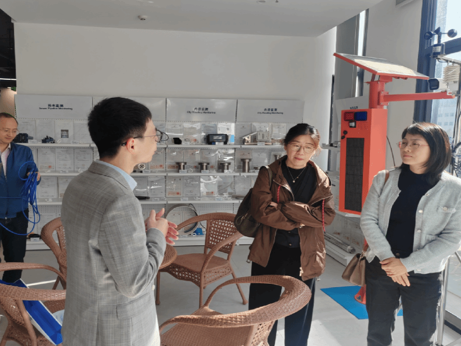 随后,调研组走访四创科技有限公司。公司副总经理施政热情接待了学院一行并介绍企业发展历程。作为国内减灾兴利信息服务领域的领先企业,四创科技业务覆盖全国多个省市区,技术实力雄厚。座谈会上,双方就智慧海洋、灾害预警、生态治理等方向的技术合作与人才输送进行探讨。唐腾凤表示,学院将积极了解企业对于技术应用落地的需求,推动学科人才培养与行业需求对接,培养更多跨学科复合型的专业人才。学院院友、2025届硕士毕业生林晨旭结合自身工作经历分享了体会并感谢学院的培养。公司人力资源部总监吴文丽、研究院院长单森华、解决方案部副经理汤礼清、战略发展部科技管理师朱何敏参加了调研座谈会。