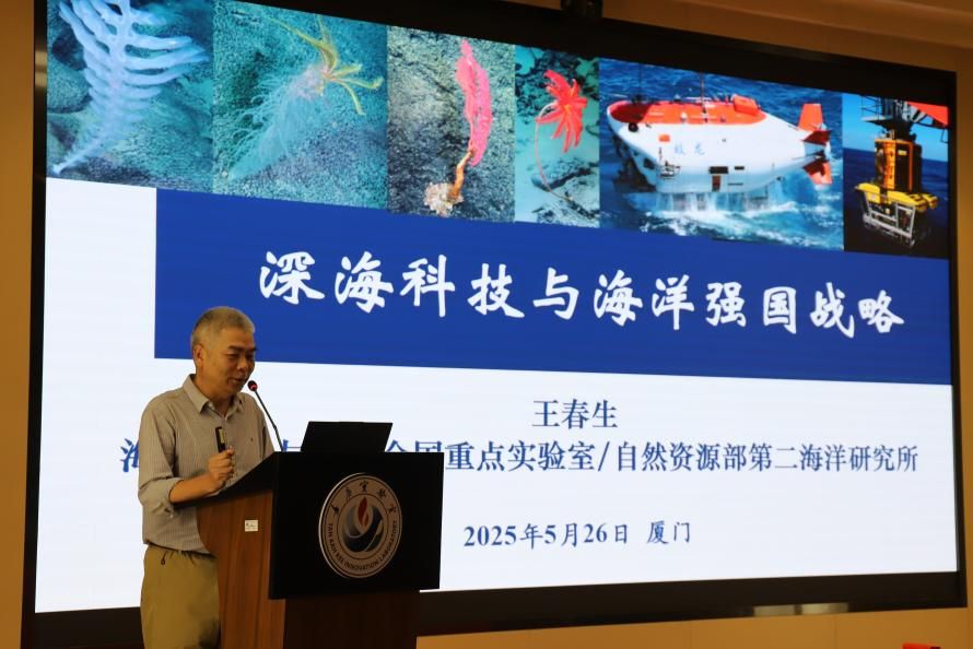 为激发青年学子投身深海科技攻关的使命担当,凝聚建设海洋强国奋进力量,5月26日下午,在嘉庚实验室3号楼二楼报告厅,自然资源部第二海洋研究所二级研究员,全国优秀科技工作者,国务院政府特殊津贴专家王春生以“深海科技与海洋强国建设”题,为翔安校区师生带来一场精彩讲座。厦门大学海洋与地球学院党委书记刘艳杰,党委副书记陈向柳、唐腾凤,翔安校区学生办秘书蒋超杰等参加此次活动。讲座由海洋与地球学院党委副书记陈向柳主持。