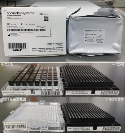 厦门大学海洋与地球学院鱼类遗传学与遗传育种团队和宁德富发水产有限公司在大黄鱼育种国家重点实验室平台支持下,合作开发了位点数量及密度等技术指标位于世界前列的“宁芯”系列大黄鱼基因组育种芯片。该芯片采用Affymetrix基因芯片制造技术,通过原位光蚀刻出数以万计的超微型杂交孔,加之以精心设计的SNP探针集合和超高分辨率荧光检测系统,实现高通量、高精确、高效率的基因型分析。其中,“宁芯1号”大黄鱼育种芯片拥有65万个SNP标记,可以同时对96个样本进行基因型分析;在“宁芯1号”基础上开发的“宁芯2号”大黄鱼育种芯片包含了更高质量标准的5.5万个SNP标记,可以同时对384个样本进行高通量基因型分析。