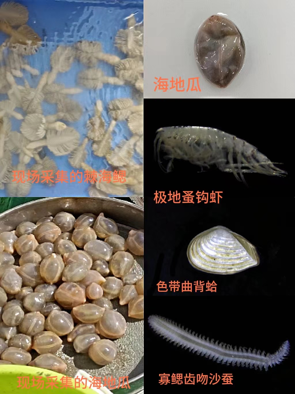 底栖生物组学习了抓斗采泥器和三角拖网定量和定性采集海洋底栖生物,以及后续样品固定、记录和保存的操作流程。本航次实习出海收获颇丰,采集到了包括多毛类(不倒翁虫、沙蚕、海稚虫等)、软体动物(小胡桃蛤、幼蛏、蚶、牡蛎等)、棘皮动物(海鳃、海仙人掌、海地瓜等)、甲壳类(虾、蟹、寄居蟹等)、鱼类(虾虎鱼、舌鳎等)在内的常见底栖生物类群。通过在解剖镜下挑选、对比底栖生物样品,同学们观察到了在不同底质类型(砂质、软泥质)中,以及利用不同采样方法所采集到的底栖生物种类差异,在实践中深刻领会课堂上的专业知识。