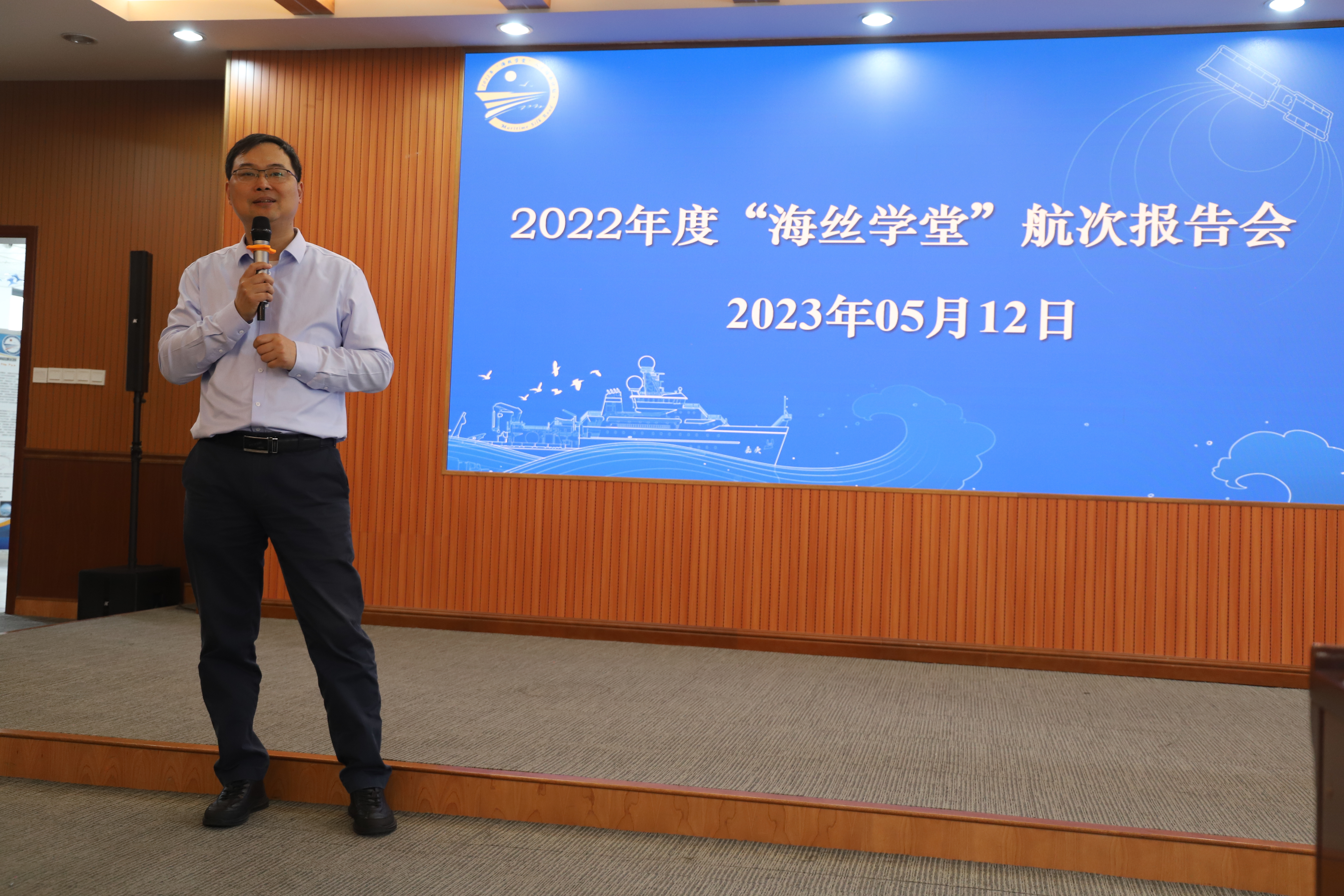 活动伊始,学院副院长徐鹏致辞,他首先介绍了“海丝学堂”人才培养项目的背景与意义,并简要概括了2022年度“海丝学堂”的航次执行情况。最后,徐鹏对项目师生不畏险阻,克服种种困难完成本届“海丝学堂”表示赞扬与感谢,并对未来有更多师生加入“海丝学堂”充满期待。