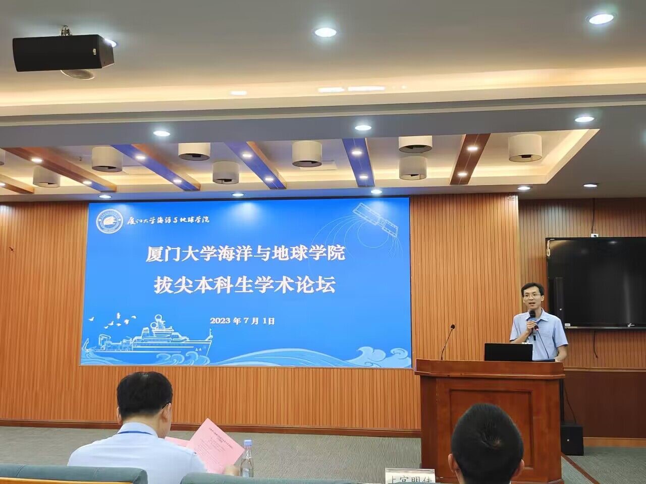 为探索新发展阶段高等教育卓越育人新范式,提高学生的创新意识和创新能力,7月1日,海洋与地球学院第二届拔尖本科生学术论坛在翔安校区希平楼C2-403会议室举行。海洋与地球学院副院长徐鹏教授、拔尖本科生培养委员会执行主席简星副教授,委员会成员上官明佳副教授、林宏阳副教授、高光副教授等出席论坛,50余名学生参与论坛。论坛由简星主持。