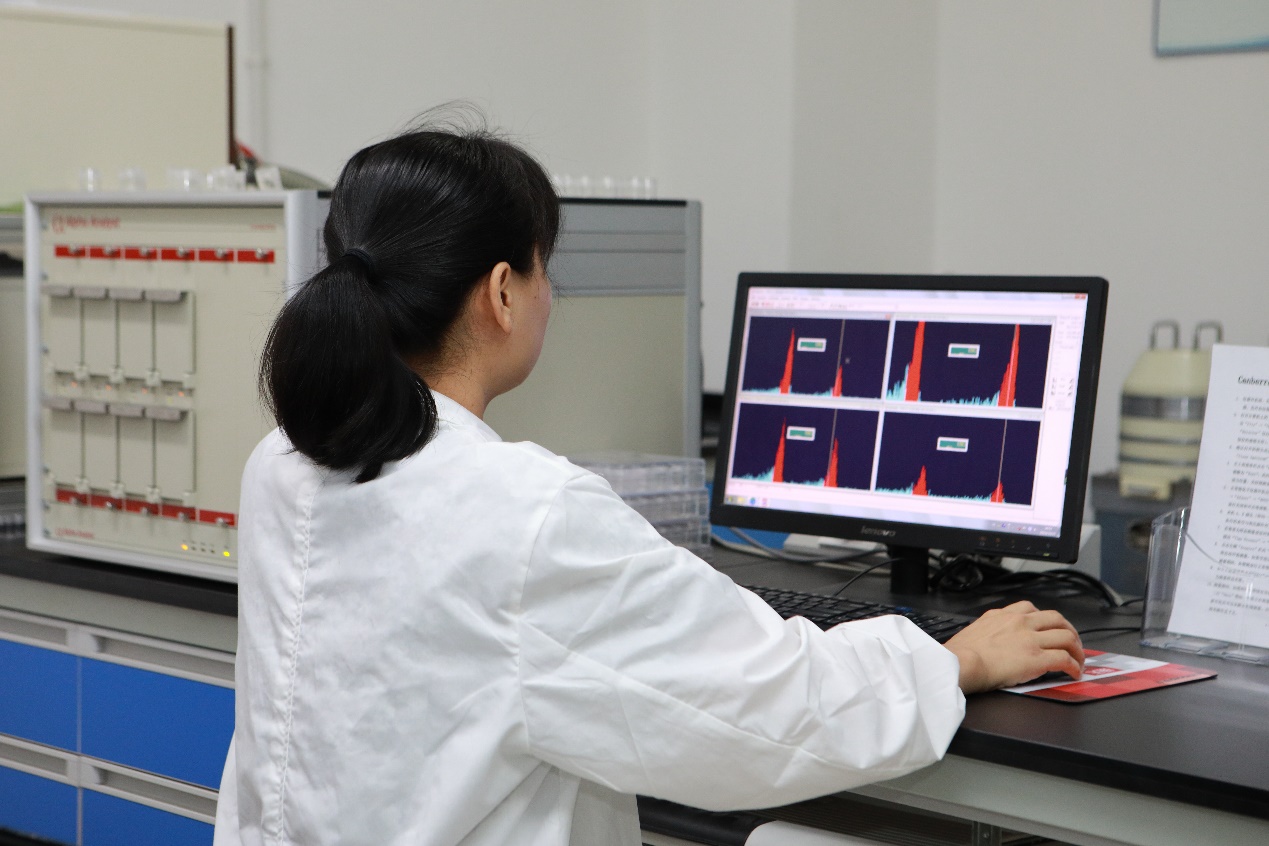 主要技术指标:表面钝化离子注入型硅探测器(PIPS),活性面积600mm2;单路ADC4096道;能量分辨率(FWHM):≤22 KeV@600mm2;仪器探测效率:≥25%;本底:>3 MeV时典型值为0.3 cph;现有8路探测室,可扩展至12路。