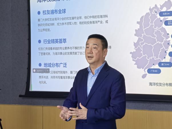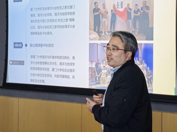 2025年1月11日下午,厦门大学校友会海洋分会第一届理事会第一次工作会议在厦门大学曾呈奎楼召开。厦门大学校友会海洋分会理事会成员代表参加会议。会议由秘书长许立新主持,以线上线下结合的方式开展,同时特邀海洋与地球学院原党委书记吴立武,党委副书记唐腾凤参会。