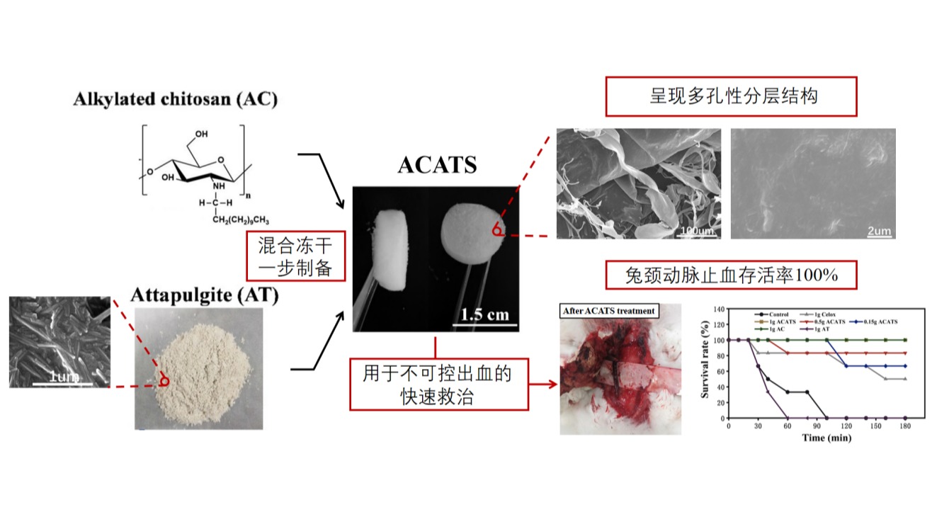 近日,厦门大学海洋与地球学院、海洋生物制备技术国家地方联合工程实验室陈铭教授团队,成功研制出一种具有良好生物相容性的快速止血复合海绵材料,相关成果以“Alkylated chitosan-attapulgite composite sponge for rapid hemostasis”为题发表于生物材料领域权威期刊Biomaterials Advances. 该材料是一种基于烷基化壳聚糖(AC)和凹凸棒石(AT)的止血复合海绵(ACATS)。其制备工艺简单、成本低廉,具有优良的快速止血效能并兼具...